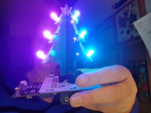 Ik kreeg via Conrad deze leuke kerstboom met LED lampjes op gestuurd om te kijken of dit gaat werken in het PO om met kinderen aan de slag te gaan met programmeren van de micro:bit met een LED lampjes.