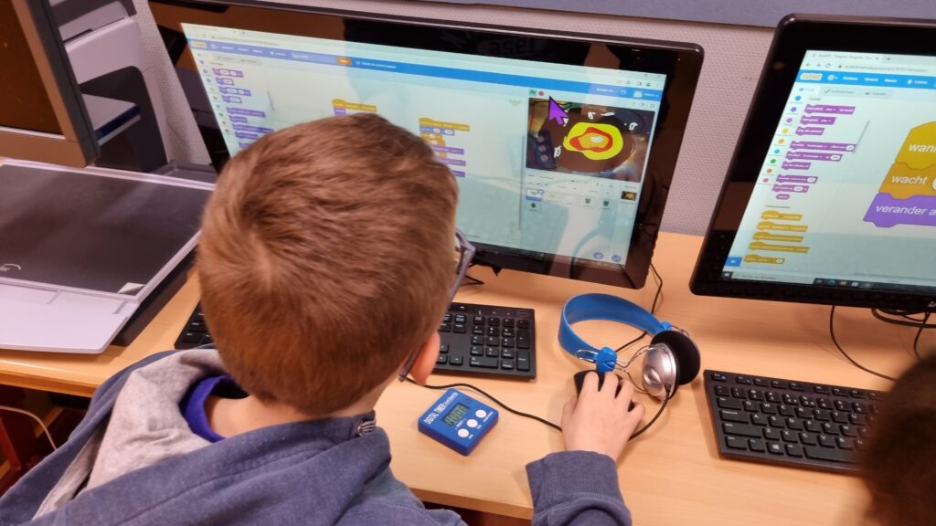 Samen met Ruben Brandsma ben ik naar onze vestiging in Haren geweest. Daar hebben we een les Scratch gegeven aan een klas. Dit was eigenlijk een train de trainer, zodat onze collega’s daar konden zien hoe je nu zon les kan geven. De leerlingen waren erg enthousiast en ook de docenten waren verbaasd dat er al zo snel zo’n mooi resultaat was. We hebben gewerkt met de Scratch Start kaarten en die hebben we groot uitgeprint en geplasticifeerd. Na afloop van deze les hebben we een presentatie gegeven aan de collega’s van Groningen over onze leerlijn programmeren. Hierbij is heel veel mooi materiaal gemaakt en dit hebben we allemaal laten zien en laten ervaren. Nu maar hopen dat ze hier snel mee aan de slag gaan.