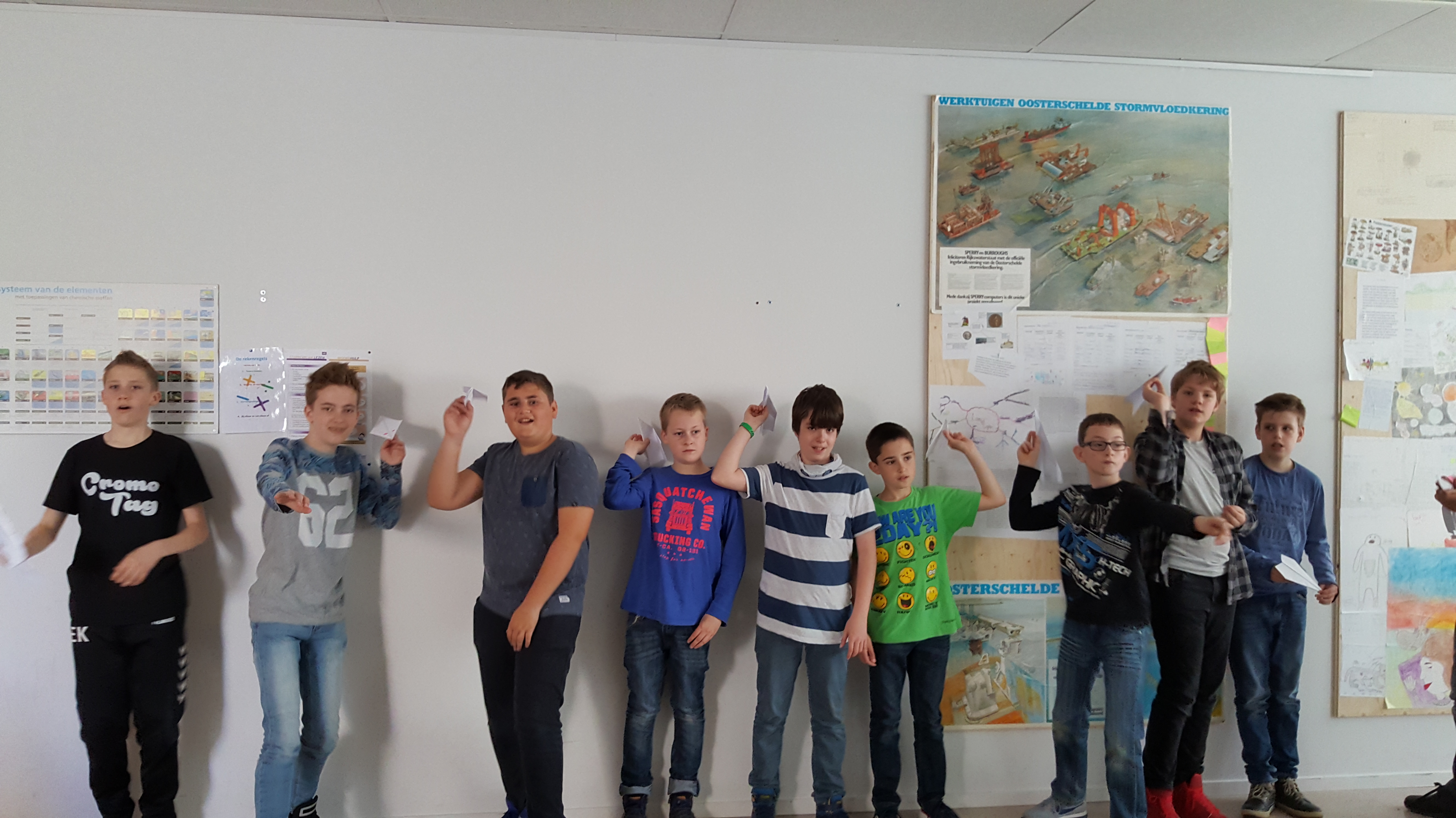 Deze week had ik weer stamgroeptijd met klas 1A bij ons op school. Ik moet dan eigenlijk altijd het nieuws behandelen. Maar iedere week het zelfde is natuurlijk niet echt iets voor mij. Toen ik de klas binnenkwam zag ik een van de leerlingen een vliegtuigje vouwen. Ik dacht, dat ga ik doen. Dus de opdracht was, vouw een vliegtuigje wat zo ver mogelijk vliegt. Sommige leerlingen gingen direct zoeken op het internet naar een tekening om er één te vouwen. Of ze probeerde maar wat. Na ongeveer 15 minuten mocht iedereen hun vliegtuigje één voor één vouwen. We keken welk vliegtuigje het verste kwam.  Toen keken we waarom (scherpe punt en smal) en hierna wilden ze dit model navouwen en hebben we nog een keer gekeken of ze nu verder gingen. Ik heb de leerlingen nog op het hard gedrukt, dat ze alleen buiten de vliegtuigjes mogen vouwen. Ik hoop dat dat in hun oren bleef hangen.