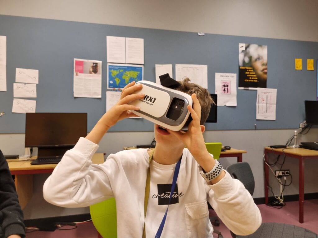 Voor de lessen D&P (Dubbelklik methode) was er een les over 360 graden foto’s en VR brillen hoe je dit kunt combineren in je winkel. Ik dacht dat is voor onze leerlingen ook wel leuk om te ervaren. We hebben goedekope VR brillen gekocht waar je je telefoon in kan zetten. En tijdens de les hebben we de leerlingen een aantal apps laten downloaden. Zo wilde 1 leerlingen eens onder water kijken, en natuurlijk is de achtbaan altijd erg populair. Zelfs onze slechziende leerlingen konden deze virtuele omgeving ervaren omdat de telefoon heel dicht op hun ogen zit. Een aantal leerlingen wilden direct weten waar we ze gekocht hadden om deze ook te kopen. Een week later hebben we ze 360 graden foto’s laten maken met de app P360. Toen merkte ze dat als ze de foto maakten hun camera steeds een beetje moesten draaien. Maar daarna konden ze deze foto weer in de VR brillen plaatsen. Een prachtige ervaring.