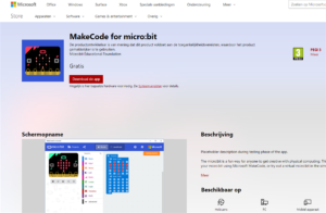 Sinds een aantal dagen is de windows app voor de micro:bit beschikbaar. De app ziet er hetzelfde uit als de makecode.com omgeving. Maar als je kiest voor downloaden dan zet hij de code direct op je micro:bit. Hij moet de eerste keer wel even de micro:bit herkennen, maar dit is eenmalig. De code downloaden naar de micro:bit gaat supersnel. Zo snel dat ik eerst dacht, hij heeft het niet gedaan.