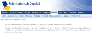 Via een collega werd ik gewezen op deze website. Ze hadden iets over mijn kind online op hun website gezet. Vandaag wilde hij even kijken wat het bericht was maar kwam op deze melding. De website is van het reformatorisch Dagblad. Zij houden de zondags rust in ere en ook de website is dus niet te bezoeken. Ook wel bijzonder dat ze dit zo consequent doorvoeren.